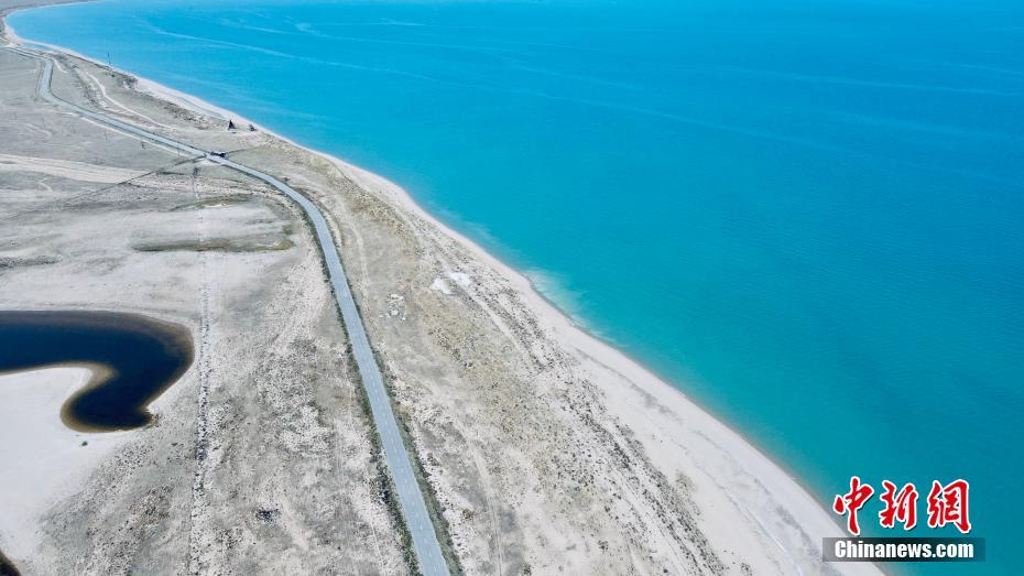 6月7日,航拍青海湖二郎劍景區(qū)一角碧波蕩漾,風景如畫。(無人機照片) 中新社記者 李江寧 攝