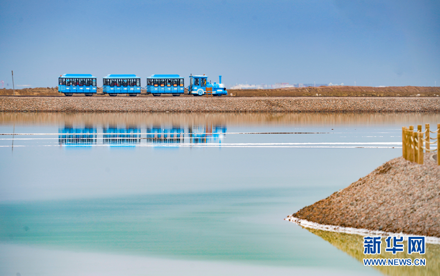 一列觀光火車(chē)從茶卡天空壹號(hào)景區(qū)內(nèi)經(jīng)過(guò)。新華網(wǎng) 宋忠勇 攝