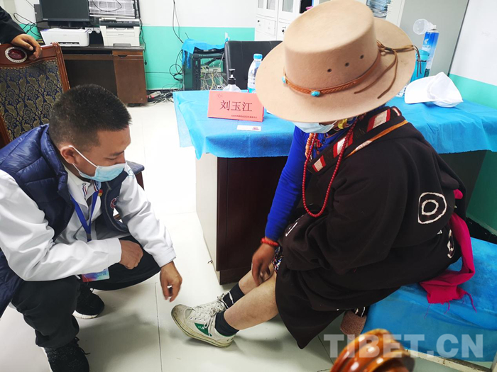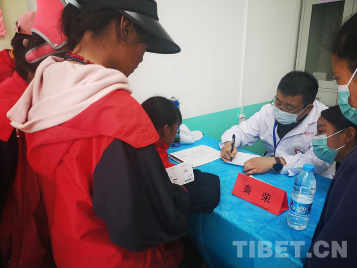 達日縣建設(shè)鄉(xiāng)義診小分隊到達鄉(xiāng)衛(wèi)生院后,當?shù)厝罕娨雅藕瞄L隊等待就診。為了讓醫(yī)患之間交流順暢,建設(shè)鄉(xiāng)衛(wèi)生院給每位義診醫(yī)生配備了一名藏語翻譯。在醫(yī)生與當?shù)蒯t(yī)務(wù)工作者的通力配合下,實現(xiàn)了問診清晰、檢查和開藥的準確傳遞。義診人員克服高原反應(yīng)癥狀,始終保持熱情、耐心、友善的心態(tài)解答病人的咨詢并開出醫(yī)囑,前來就診的群眾拿到醫(yī)囑后領(lǐng)取了免費藥品。