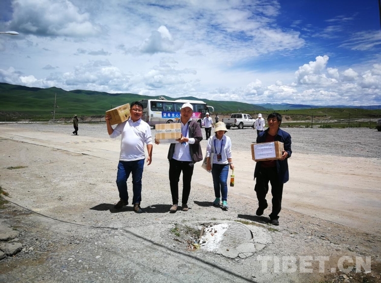 圖為2018年企業(yè)愛心志愿者前往瑪曲縣貧困群眾家,發(fā)放一對一幫扶因病返貧家庭的生活物資