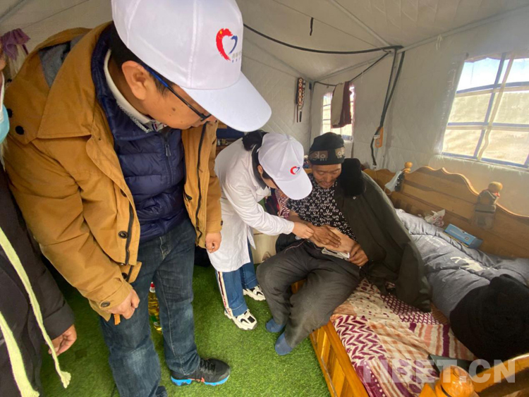 兩天來,瑪多余震不斷、陰晴不定,醫(yī)生們克服各種不適,兵分幾路,分別在縣醫(yī)院、噶旦村瑪查理安置點、扎陵湖鄉(xiāng)安置點、黃河鄉(xiāng)唐格瑪村醫(yī)療點進行義診和帶教查房。除此之外,由6名專家組成的醫(yī)療小組還走進7戶當?shù)鼐用窦抑?,帶著藥品和食用油、棉被等生活用品,給病患之家送去溫暖。