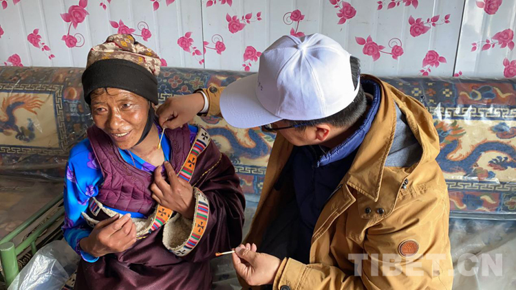 圖為陳林大夫為馬朋措做檢查(組委會供圖)