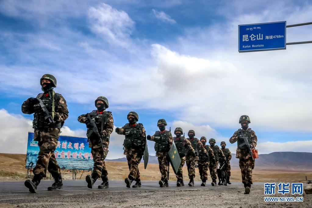 武警青海總隊(duì)執(zhí)勤支隊(duì)執(zhí)勤七中隊(duì)官兵在昆侖山口巡邏(2月3日攝)。新華社 楊浩 攝