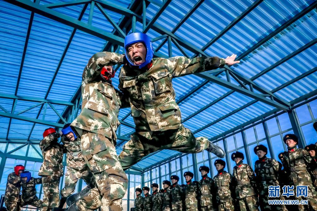 武警青??傟?duì)執(zhí)勤支隊(duì)執(zhí)勤七中隊(duì)官兵在訓(xùn)練館訓(xùn)練(2月1日攝)。新華社 楊浩 攝