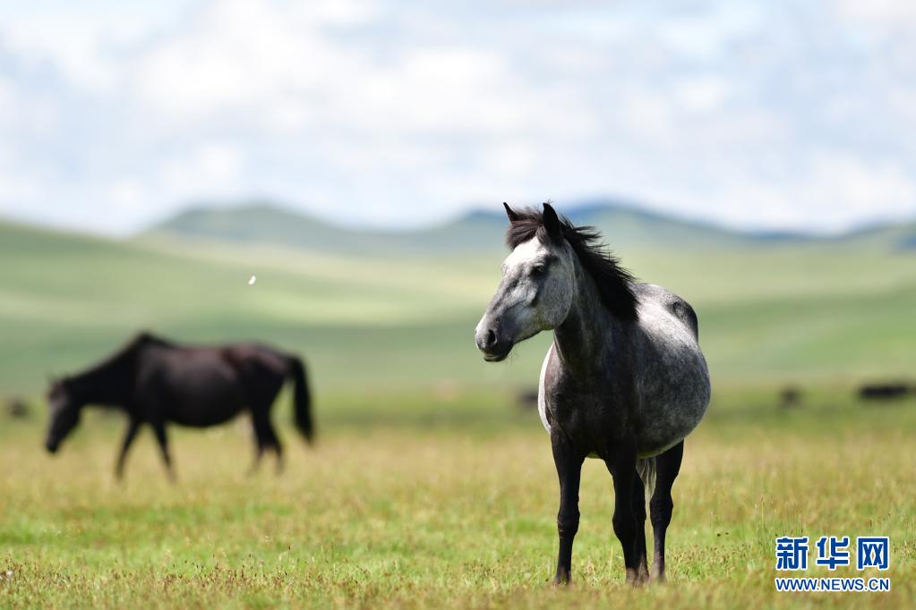 這是7月15日在甘肅瑪曲縣河曲馬場(chǎng)拍攝的河曲馬。新華社記者 杜哲宇 攝