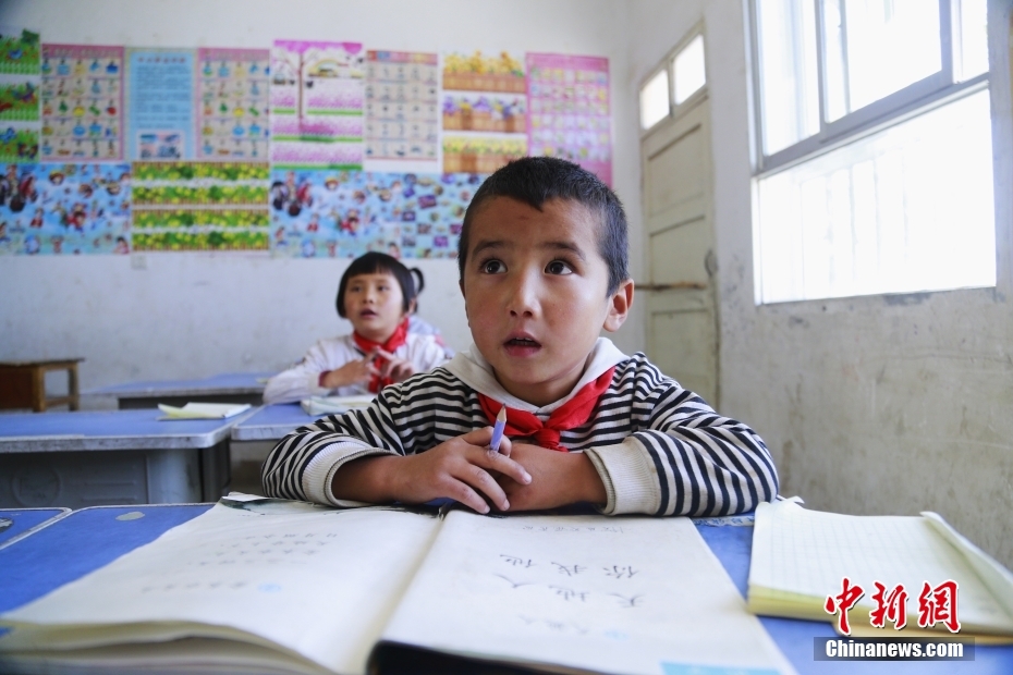 在青海省海東市循化撒拉族自治縣白莊鎮(zhèn)來(lái)塘村來(lái)塘學(xué)校教室內(nèi),學(xué)生正在上課。中新社記者 馬銘言 攝