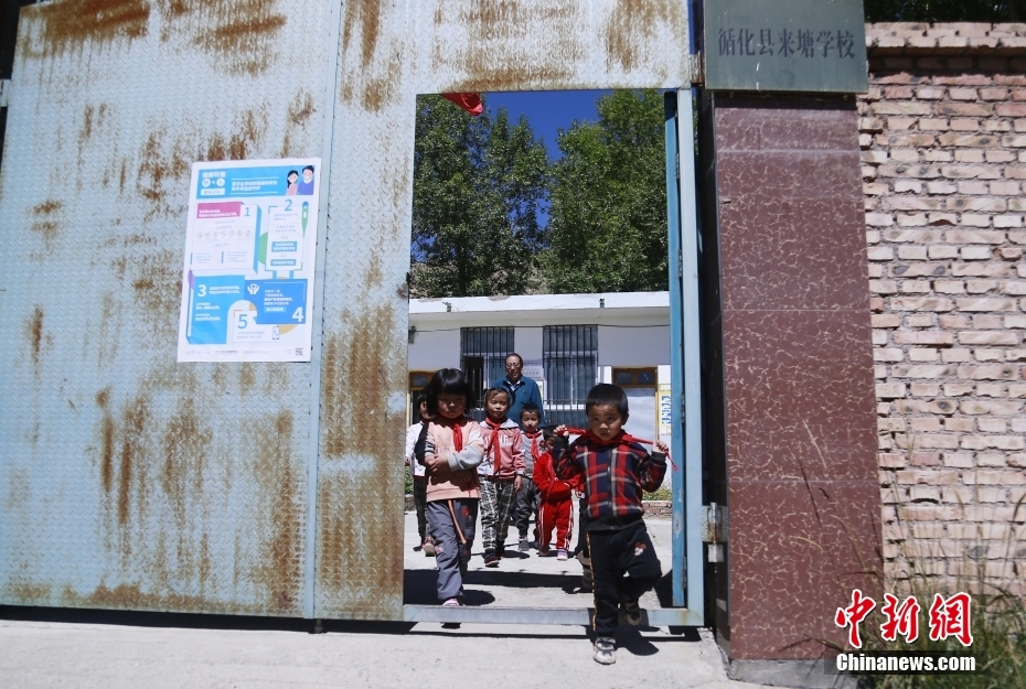 中午放學(xué),學(xué)生離開(kāi)青海省海東市循化撒拉族自治縣白莊鎮(zhèn)來(lái)塘村來(lái)塘學(xué)校。中新社記者 馬銘言 攝