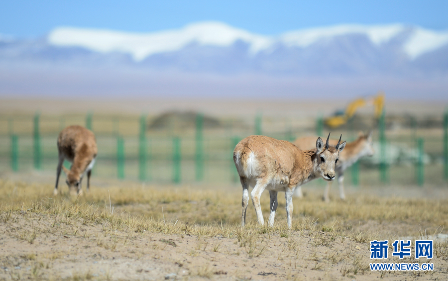 在可可西里國家級自然保護區(qū)索南達杰保護站,幾只藏羚羊在野生動物救助中心活動(9月28日攝)。新華社記者 嚴賦憬 攝