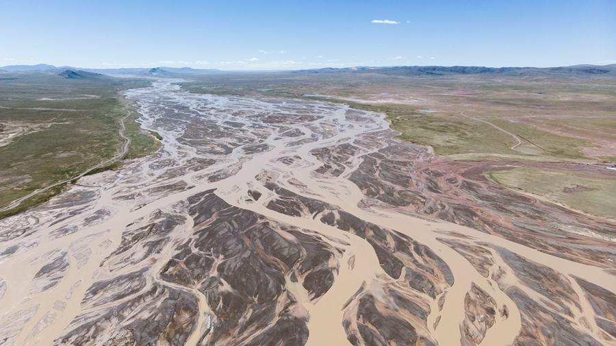 這是2019年8月9日拍攝到的位于青海省格爾木市唐古拉山鎮(zhèn)的長江正源沱沱河的照片(無人機(jī)照片)。新華社記者 吳剛 攝