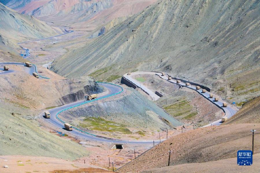 聯(lián)勤保障部隊汽車運輸某團一營一連在執(zhí)行運輸任務(2020年8月7日攝)。新華社發(fā)