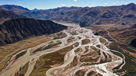 青海玉樹(shù)藏族自治州囊謙縣,瀾滄江上游的網(wǎng)狀水系縱橫交錯(cuò),繪就壯美畫(huà)卷。陳曉 攝