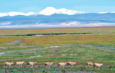 “可可西里”是蒙古語,意思是“美麗的少女”,在地理上位于治多縣的最西部。這里是原始生態(tài)環(huán)境保存較為完整的處女地,也是很多珍稀野生動(dòng)植物的棲息地,其中,最為世人關(guān)注的便是藏羚羊。