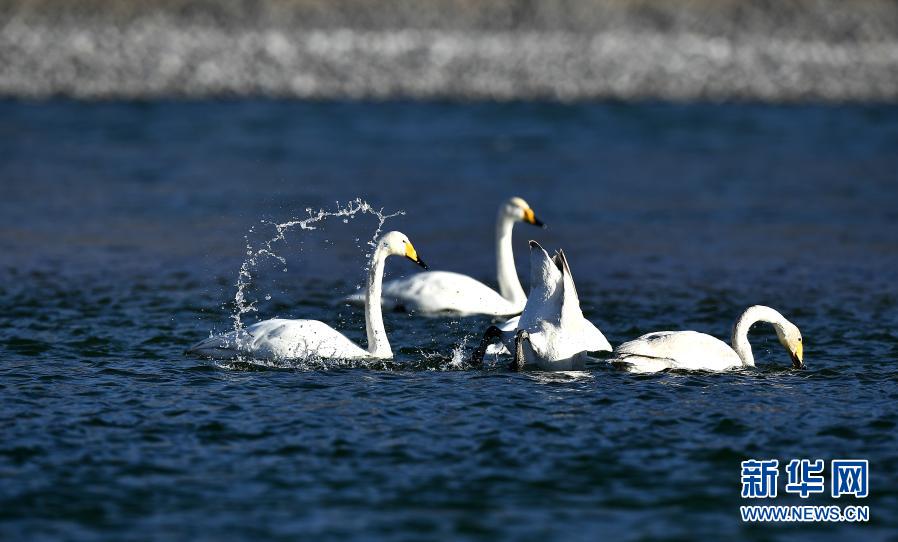 青海黃河濕地迎來越冬天鵝