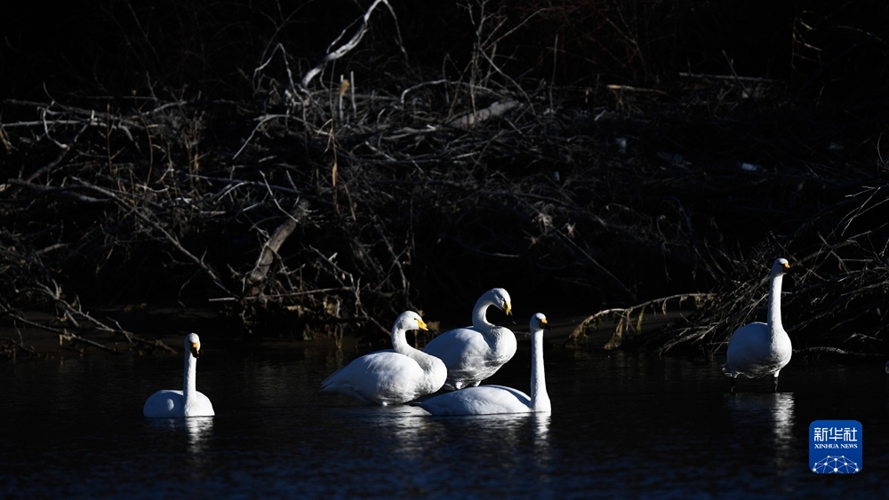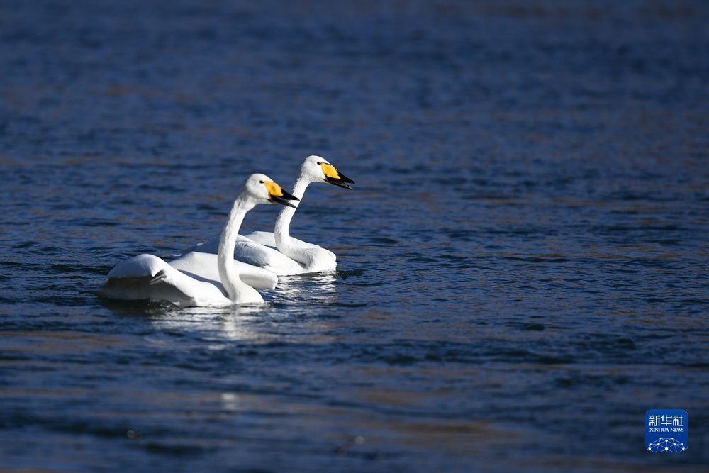 近日,前來越冬的近百只天鵝在青海省海南藏族自治州貴德縣境內(nèi)的黃河濕地覓食休憩,為冬日黃河帶來勃勃生機。近年來,青海省加大力度保護治理境內(nèi)黃河流域,改善當(dāng)?shù)厣鷳B(tài)環(huán)境,為越冬候鳥提供良好棲息地。