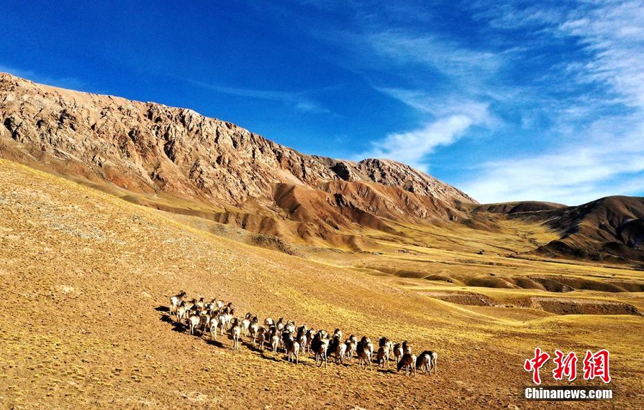 圖為航拍成群盤羊。贊慶 攝