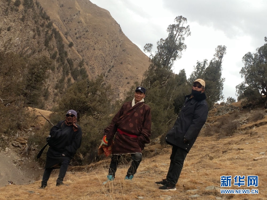 圖為桑杰加(左)和同事巡查林場?!●R銘言 攝