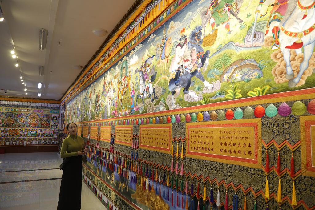 目前,拉毛葉忠正帶領百名繡娘計劃用5年時間完成一幅長268米的藏繡作品《格薩爾王》?!拔磥?,我希望更多農(nóng)牧區(qū)婦女通過學習藏繡改變自己的命運,我們一起在傳承中創(chuàng)新,讓藏繡走向更廣闊的舞臺?!崩~忠說。