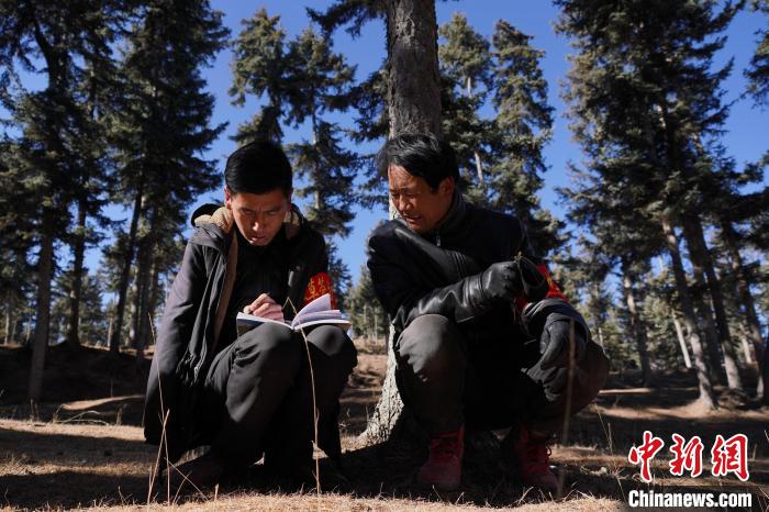 圖為桑杰加正在記錄巡查結(jié)果?!●R銘言 攝