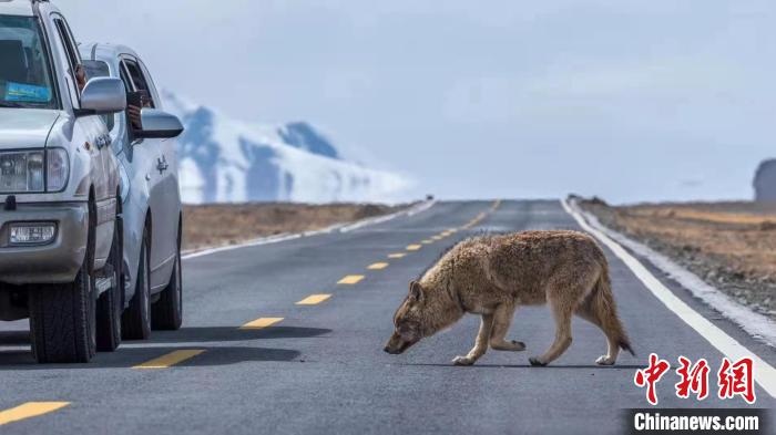 圖為青藏公路上的狼。何啟金 攝