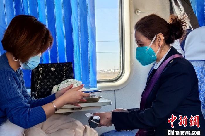 圖為小慢車列車值班員郇靜為乘客補(bǔ)票。候?qū)毾?攝