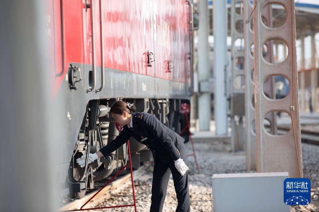 張夢(mèng)晨在出乘前檢查機(jī)車(chē)。馬鵬 攝