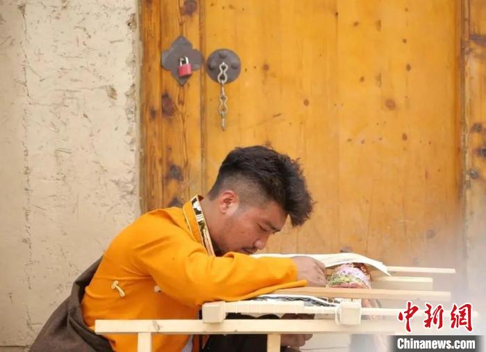 “2013年,我進(jìn)壤巴拉覺囊唐卡傳習(xí)所學(xué)習(xí)唐卡,一并學(xué)習(xí)語文、數(shù)學(xué)、品德等文化課?!备竦翘亟邮懿稍L時(shí)表示,2016年,他開始學(xué)習(xí)藏繡。經(jīng)過5年多時(shí)間學(xué)習(xí),格登特成為縣級非遺傳承人。憑借制作藏繡,格登特去年一年就掙了5萬余元,這成為格登特家中主要經(jīng)濟(jì)來源之一。
