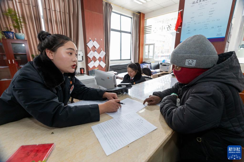 在石渠縣人民法院,“正義雪蓮”女子審判團(tuán)隊(duì)成員(左)為當(dāng)?shù)鼐用裉峁┓勺稍儯?月11日攝)。新華社記者 沈伯韓 攝