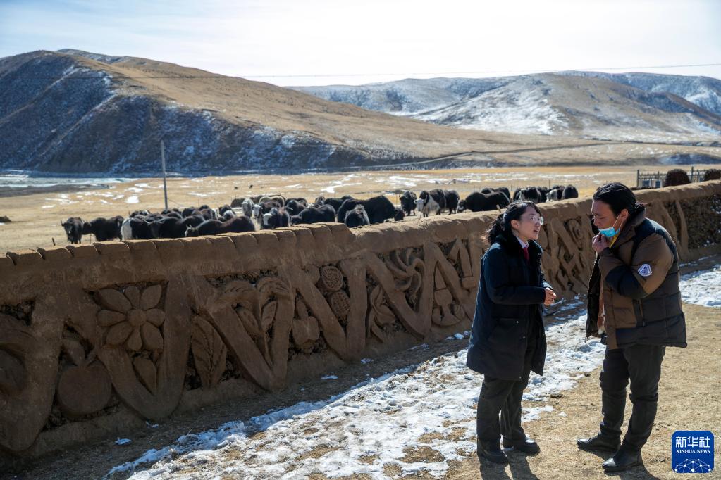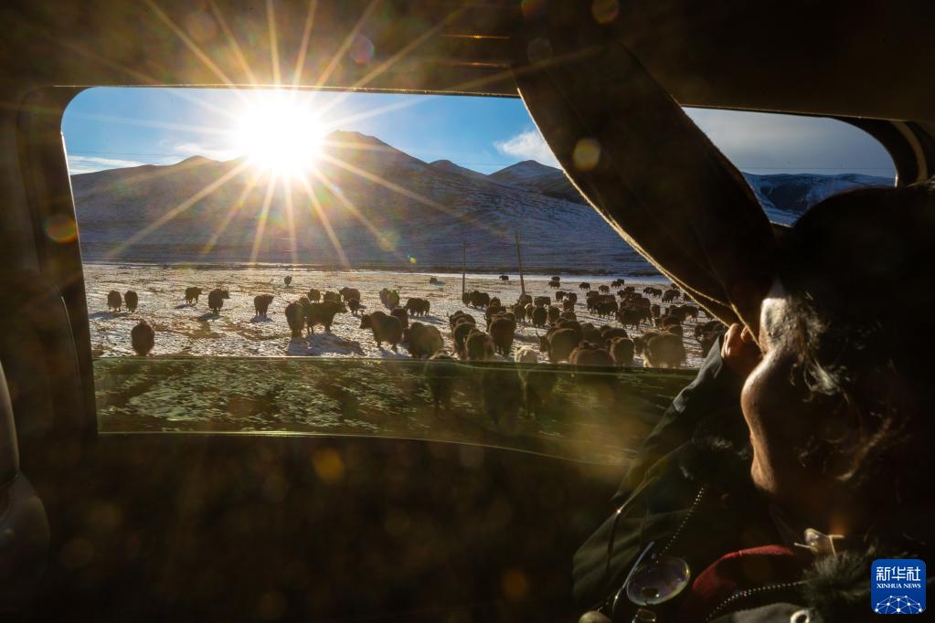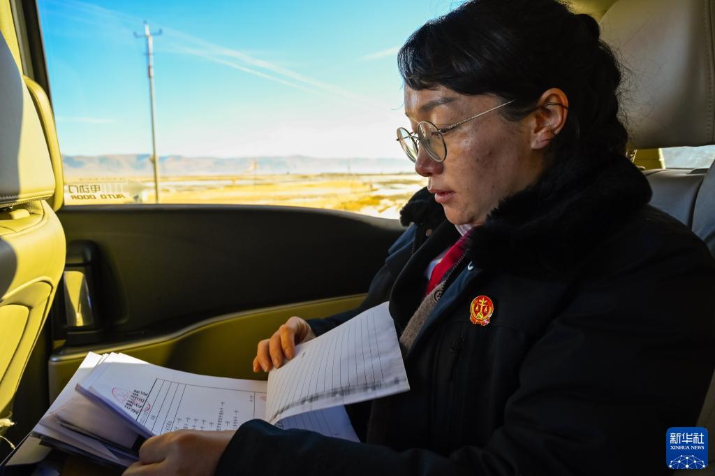 “正義雪蓮”女子審判團(tuán)隊(duì)成員乘車來到距離石渠縣城70公里的呷依鄉(xiāng),準(zhǔn)備通過巡回審判開庭審理一起離婚案。當(dāng)事人之一站在牦牛群中,等待法官清點(diǎn)牦牛數(shù)量,為其進(jìn)行財(cái)產(chǎn)分割(1月10日攝)。新華社記者 沈伯韓 攝