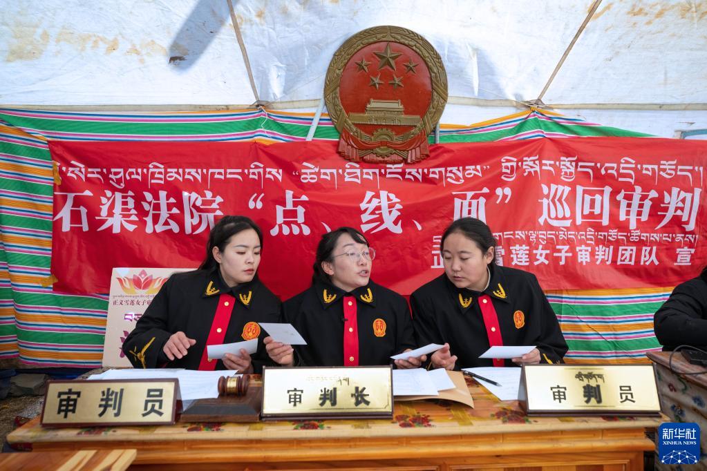 石渠縣地廣人稀,25萬平方公里的土地上散居著10萬人,一旦有了矛盾糾紛去法院并不方便?!罢x雪蓮”女子審判團(tuán)隊(duì)為了減輕當(dāng)事人的訴訟負(fù)擔(dān)和壓力,主動(dòng)扎進(jìn)牧場、深山,送法到群眾身邊,通過“馬背法庭”“帳篷法庭”“車載法庭”等巡回審判的形式,為群眾解決急難愁盼的問題。據(jù)統(tǒng)計(jì),石渠縣人民法院如今每年有近一半的案件通過巡回審判辦理。