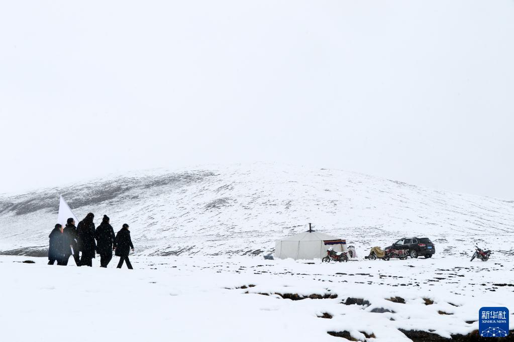 “正義雪蓮”女子審判團(tuán)隊(duì)成員冒雪深入牧區(qū),為牧民提供法律服務(wù)(2021年5月16日攝)。新華社發(fā)