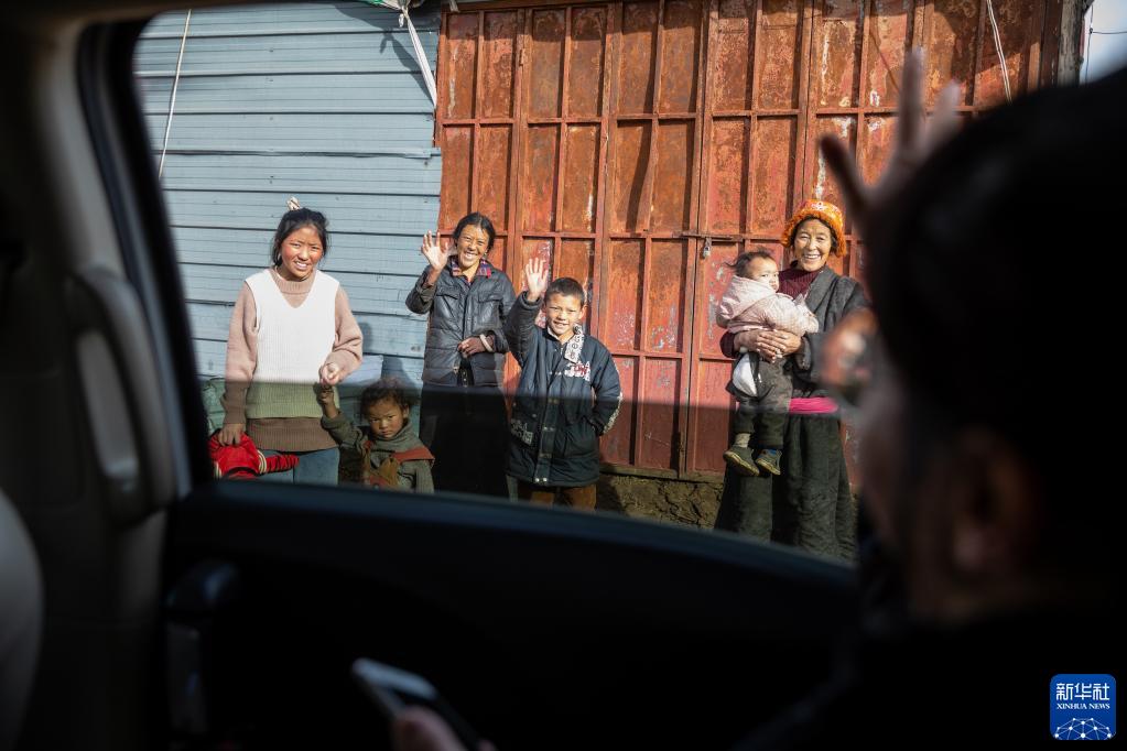 “正義雪蓮”女子審判團(tuán)隊(duì)成員到當(dāng)事人家中回訪,群眾向他們揮手致意(1月11日攝)。新華社記者 沈伯韓 攝