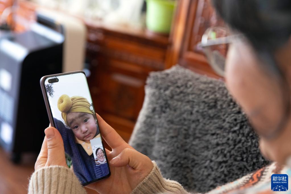 在石渠縣家中,法官澤仁曲西與遠(yuǎn)在成都的兒子通過視頻電話交流(1月11日攝)。目前,澤仁曲西的兒子跟著外婆在成都,丈夫在300多公里外的德格縣工作,一家人分居三地,相聚時(shí)間寥寥。新華社記者 沈伯韓 攝