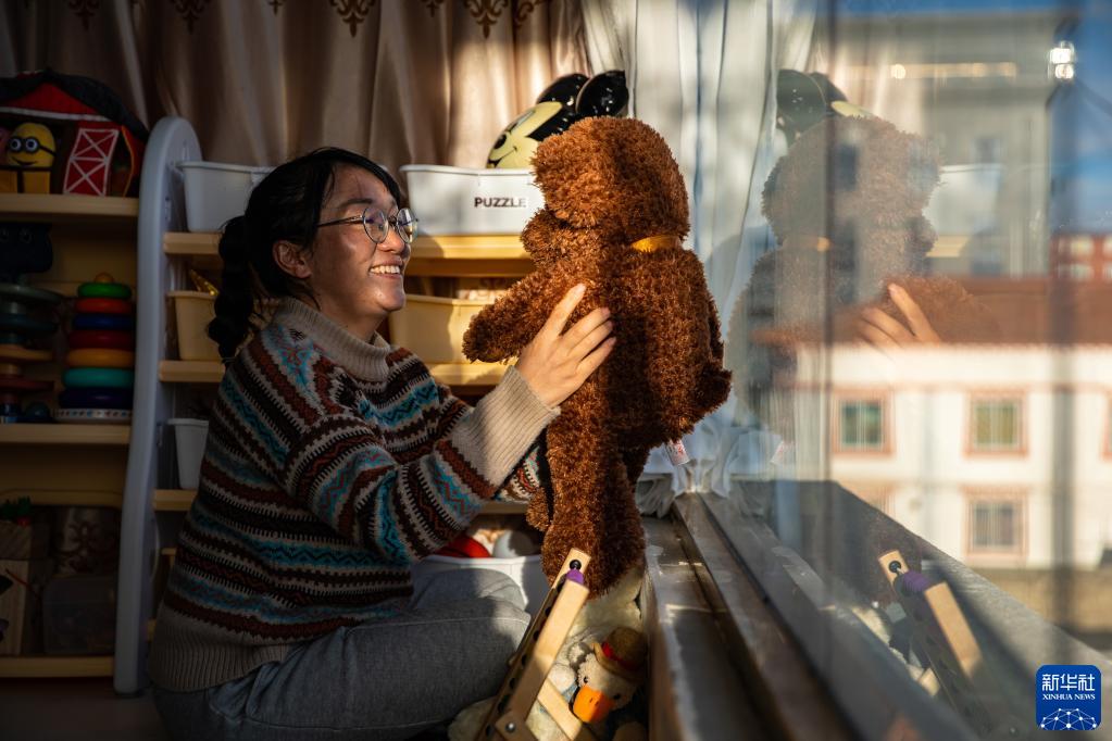 在石渠縣家中,法官澤仁曲西在整理兒子的玩具(1月11日攝)。目前,澤仁曲西的兒子跟著外婆在成都,丈夫在300多公里外的德格縣工作,一家人分居三地,相聚時(shí)間寥寥。新華社記者 沈伯韓 攝