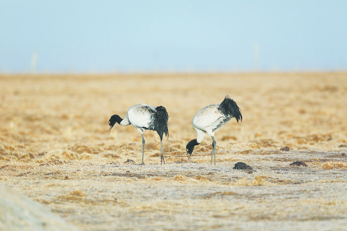 “通常在濕地內(nèi)看到黑頸鶴,如果走近它們,它們便會迅速飛走,和人保持安全距離?!比缈聘嬖V記者,那日凌晨,他第一次與黑頸鶴離得那么近,不忍走出門外,就在窗戶后面靜靜地觀看這對黑頸鶴夫婦。