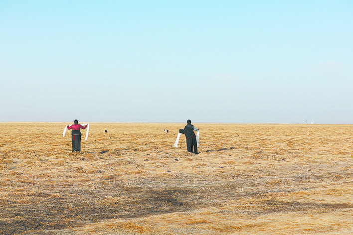 年復(fù)一年,如科每天帶上工作證、望遠(yuǎn)鏡、茶水和干饃饃,從他居住的觀測站出發(fā),騎著摩托車巡護(hù)濕地;他的妻子沿著湖泊撿拾垃圾,守護(hù)著黑頸鶴的棲居環(huán)境,守護(hù)著野生動物的美好家園。