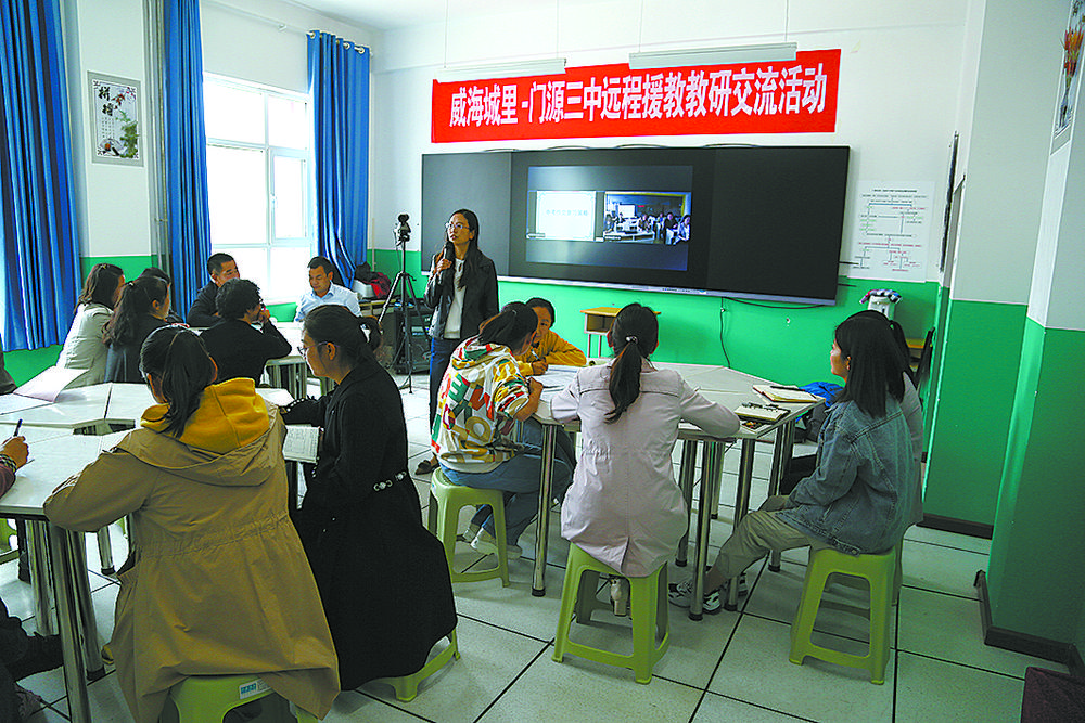 2019年9月,山東援青在門源縣啟動(dòng)“威?!T源遠(yuǎn)程智慧援教工程”試點(diǎn)。目前,山東援青累計(jì)投入資金870余萬(wàn)元,基本實(shí)現(xiàn)了山東四市對(duì)海北四縣中小學(xué)遠(yuǎn)程智慧援教全覆蓋,推動(dòng)山東與海北結(jié)對(duì)學(xué)校老師之間的同步備課、同步聽(tīng)課、同步評(píng)課、同步研課,先后開(kāi)展活動(dòng)800余次,兩地6000多名教師參與,山東老師不到高原也能參與援青支教,使海北學(xué)子不離家鄉(xiāng)也能享受優(yōu)質(zhì)教育。