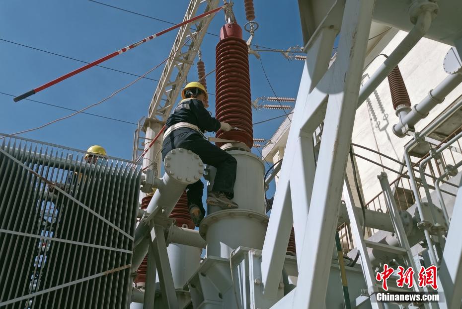 圖為接觸網(wǎng)工對牽引變電所設(shè)備進行清洗。王文誠 攝