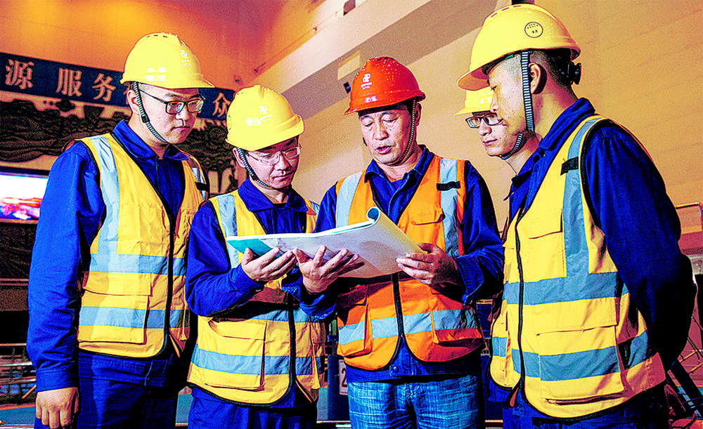 水電站工作人員檢修水電機組。張勇 攝