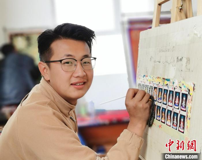 今年23歲的羅藏成立,10歲開(kāi)始學(xué)畫(huà)畫(huà),12歲時(shí)跟著桑杰加系統(tǒng)學(xué)習(xí)唐卡,目前,羅藏成立專注于繪制微型唐卡——扎卡,每個(gè)月也能掙1萬(wàn)元左右。