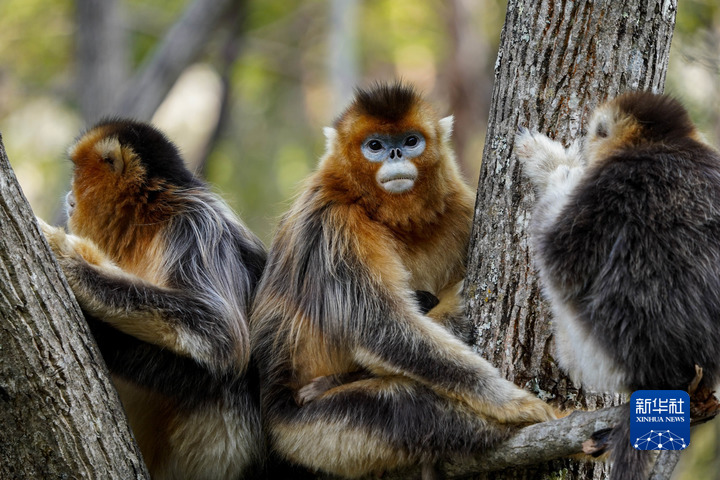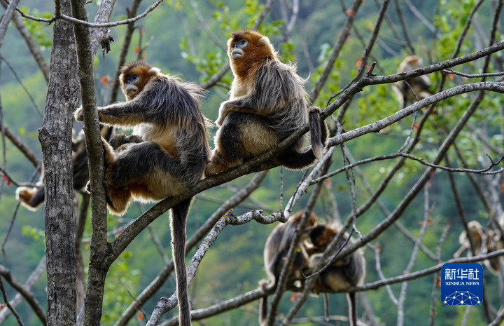 這是4月26日在四川白河國家級自然保護區(qū)里拍攝的川金絲猴。新華社記者 江宏景 攝