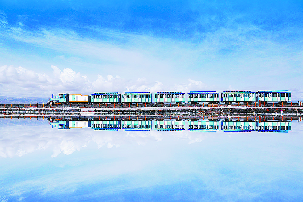 “走進鹽湖,湖面猶如一面鏡子,從青海的天空中飄落,落在茶卡,湖如鏡,鏡是湖。藍(lán)天、白云、雪山、人影,純凈的交織如同一場夢境?!边@段留在網(wǎng)絡(luò)上對茶卡鹽湖詩意的描述,觸動了無數(shù)人的心弦。