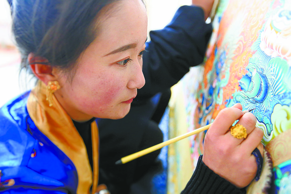 邁步新時代,隨著高質(zhì)量發(fā)展的大潮涌起,“熱貢藝術(shù)”這一世代相傳的瑰寶已成為同仁走出省門國門、面向世界的金色名片,其相關(guān)產(chǎn)業(yè)在不斷改革發(fā)展中,成為推進經(jīng)濟發(fā)展和鄉(xiāng)村振興的源頭活水。