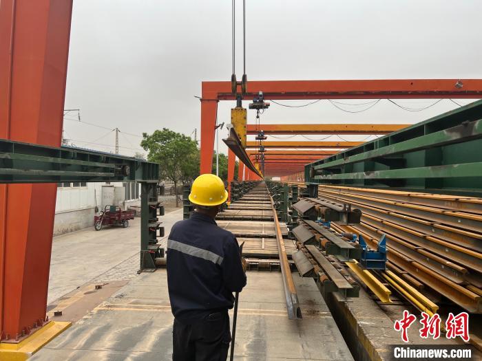 記者17日從中國鐵路青藏集團有限公司(以下簡稱“青藏集團公司”)獲悉,日前,青藏集團公司西寧工務(wù)機械段換軌車間610米重型長軌車隊,從中國鐵路蘭州局集團公司管內(nèi)河口南站裝載的24根500米長軌,在烏魯木齊局管內(nèi)烏拉泊站卸載,完成了“千里運送鋼軌”的首站任務(wù)。