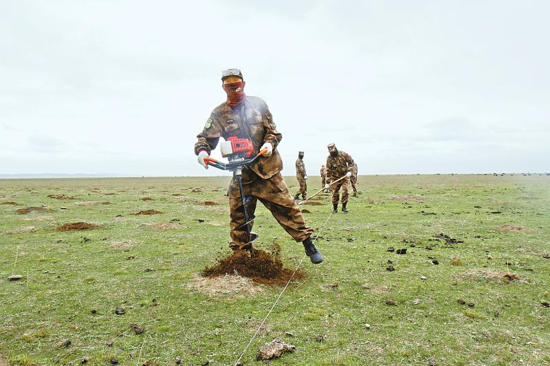 4月初,阿壩州召開黃河干支流域生態(tài)防護帶建設(shè)動員部署會,提出錨定“兩年建成、三年管護、五年見效”目標,采取統(tǒng)籌干支聯(lián)動、整體推進的策略實施。為此,全州開展了大規(guī)模的植樹種草行動。按照安排,黃河護河隊承擔(dān)了黃河岸邊約20公里預(yù)挖樹坑的任務(wù)。