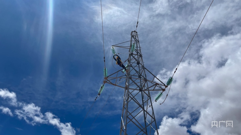 電力線路工在清洗絕緣設備(央廣網發(fā) 周賀 攝)