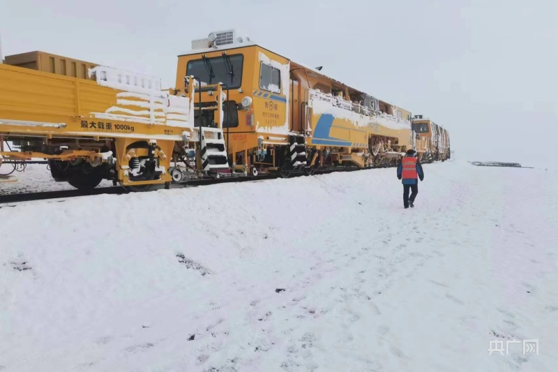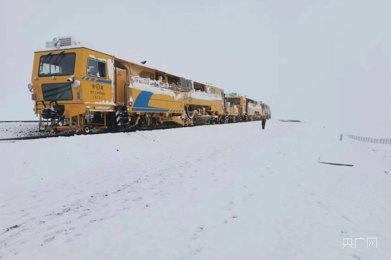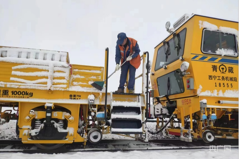 昆侖山上,氣溫驟降,多處施工現(xiàn)場被大雪覆蓋,一片白雪皚皚。為確保施工順利進行,近日,西寧工務(wù)機械段維修三車間的職工們開啟了對青藏鐵路格拉線望昆——昆侖山區(qū)間大機搗固施工作業(yè)。西寧工務(wù)機械段維修三車間主任王海峰在施工作業(yè)前,帶領(lǐng)車間職工清理積雪,同時對低溫狀態(tài)易發(fā)生故障的作業(yè)裝置進行針對性保養(yǎng)?!白⒁饽_下積雪濕滑,扶穩(wěn)抓牢,保證自身人身安全。”車間副主任張小波提醒說。