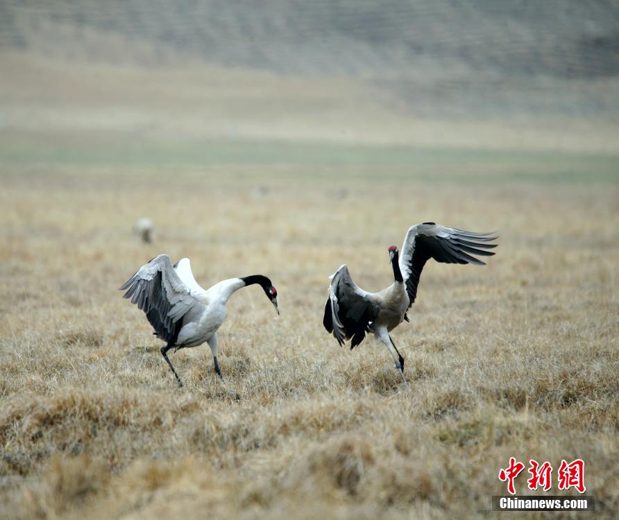 近日,百余只黑頸鶴集群在四川省阿壩藏族羌族自治州若爾蓋國家級自然保護區(qū)熱曲河畔追逐、休憩,它們將在這里慢慢建立各自的領(lǐng)域并進入繁殖期。[詳細] -