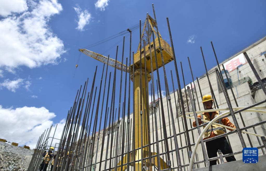 6月22日,施工人員在羊曲水電站施工現(xiàn)場作業(yè)。新華社記者 張宏祥 攝