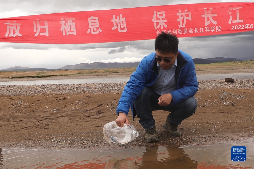 23日,在海拔超過(guò)4800米的長(zhǎng)江南源當(dāng)曲河畔,水利部長(zhǎng)江水利委員會(huì)長(zhǎng)江科學(xué)院首次開展長(zhǎng)江源特有魚類增殖放流活動(dòng)。