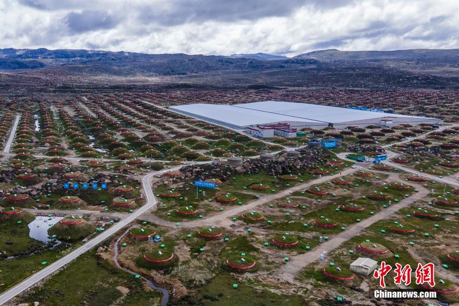 6月28日,四川稻城,觀測站中間房屋結(jié)構(gòu)為水切倫科夫探測器。海拔4410米的四川省甘孜州稻城縣海子山,5216個(gè)電磁粒子探測器和1188個(gè)繆子探測器,以及占地78000平方米的水切倫科夫探測器有序分布在1.36平方公里范圍,十分壯觀,這是中國建設(shè)的第三代高山宇宙線實(shí)驗(yàn)站。中新社記者 劉忠俊